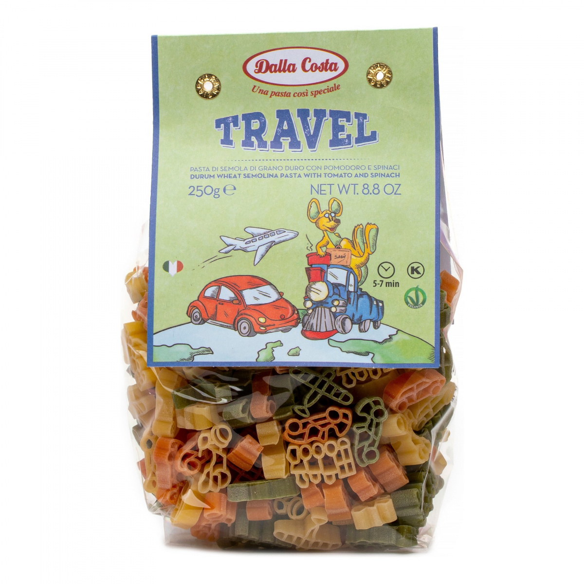 Разноцветные макаронные изделия без добавления яиц с томатом и шпинатом «Путешествие» изготовлены из твердых сортов пшеницы и родниковой воды в виде разноцветных машинок, самолетов, поездов. Порадуйте малышей изысканным, вкусным и полезным блюдом, заправив пасту детским соусом “Бешамель”.Семья Далла Коста бережно хранит традиции производства итальянской пасты, эдакий любовный союз, который призван удовлетворять вкусам ценителей в разных уголках света. Для того чтобы расширить ассортимент и донести ценность превосходного продукта до потребителя, "Dalla Costa" запустила линии трехцветной и ароматизированной пасты, в секторе производства которых компания является лидером на сегодняшний день. Постоянное стремление к более высокому качеству находит отражение в новых вкусах, богатом ассортименте, разнообразии форматов и создании новых продуктов.