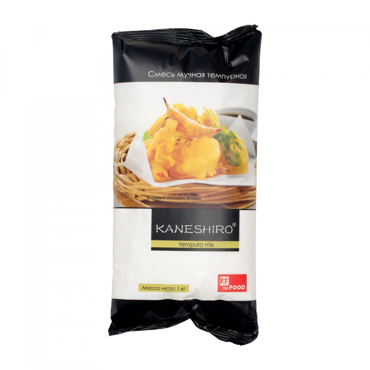 Курицы и овощей в кляре, а так же идеальна для приготовления горячих роллов. Teмпура Kaneshiro плотным слоем покрывает продукт и образует румяную ажурную корочку с хрустящей воздушной текстурой.Темпура Kaneshiro не горит при жарке во фритюре, не впитывает и не пропускает масло в готовый продукт. Золотистая корочка остается хрустящей продолжительное время после жарки. Для того, чтобы добиться таких характеристик компания ResFood при изготовлении темпурной смеси использует три вида муки: кукурузная, рисовая и пшеничная. Смесь сочетает в себе их лучшие качества и позволяет добиться превосходного вкуса, затрачивая минимум усилий на приготовление блюда.