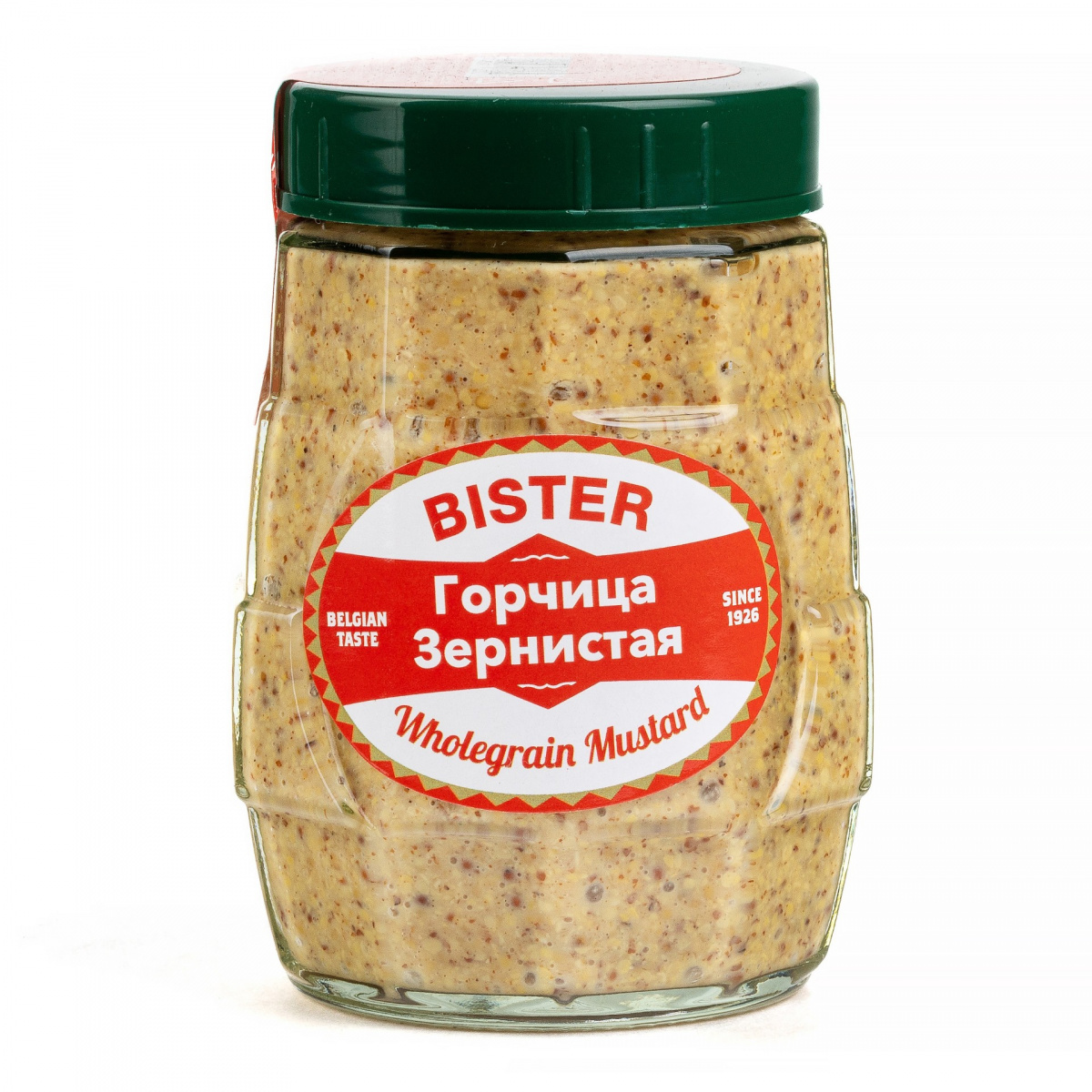 Горчица Зернистая "Bister" приготовлена по-старинному рецепту, который возвращает к тому времени, когда зернышки мололи жерновами. Горчица Зернистая "Bister" изготавливается в керамической бочке из перетертых семян. В состав горчицы входят только натуральные компоненты: душистый или горький перец, лавровый лист, гвоздика, мускатный орех, кардамон, чеснок. Горчица “Bister” способствует легкому расщеплению белков, поэтому она прекрасно сочетается с мясом и рыбой. В ассортименте “Bister” представлено два вида – обычный на крепком уксусе и «во французском стиле» с восхитительным яблочным уксусом и специями с легким фруктовым ароматом. О компании: Bister Mustard основана предприимчивым энтузиастом Франсуа Бистером в 1926 году. До создания компании Франсуа долгие годы питал страсть к гастрономическим экспериментам и занимался обжаркой цикория. В 1930 году он приобрел местное производство горчицы и обратил внимание на рецепт горчицы L'Impériale которая принесла известность торговой марки и популярна по сей день. Третье поколение семьи Бистер управляет двумя производствами, одно из которых находится в Бельгии (г. Намюр), другое в Шампани (г. Сен-Тибольт).