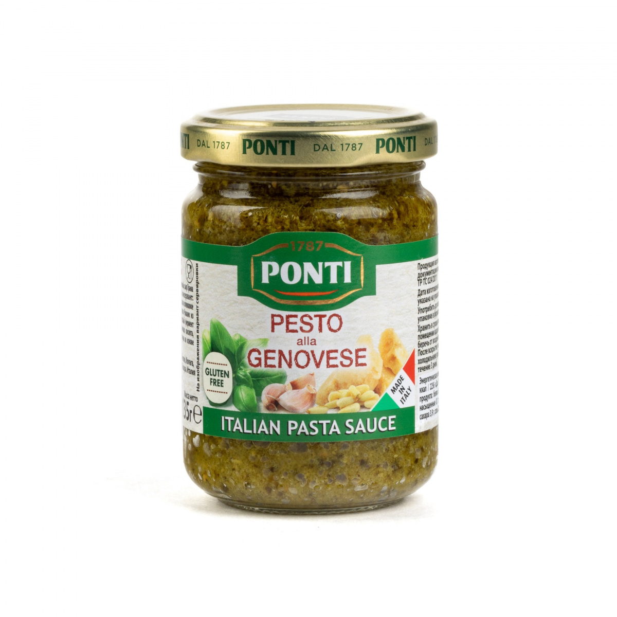 Соус Песто Генуезский –классический итальянский соус из базилика изготовлен по семейному рецепту. Отличается ароматом свежих листьев базилика, густой консистенцией и изысканным вкусом с тонами пряных трав и оливкового масла Extra Virgin. Соус Песто Генуезский идеален в сочетании с пастой, блюдами из мяса и рыбы, великолепная заправка для салатов. Компания «Ponti» основана в 1867 году известным фермером Джованни Понти, долгие годы производившим вино и уксус. В 1911 сын Джованни - Антонио Понти получил приз на международной ярмарке в Париже за высокое качество изготавливаемого вина и уксуса. Сегодня производством управляет 7 поколение семьи Ponti.Компания «Ponti» является крупнейшим изготовителем винного уксуса в Европе.Основным принципом компании «Ponti» является клиентоориентированный подход к работе. Особое внимание уделяется квалификации персонала, сотрудники проходят обязательное трехлетнее обучение и выбору качественного сырья.