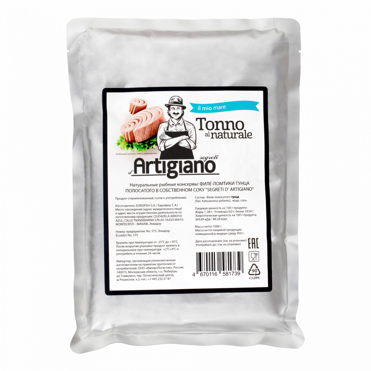 Тунец филе-ломтики в с/с ARTIGIANO пакет (1,000 кг)