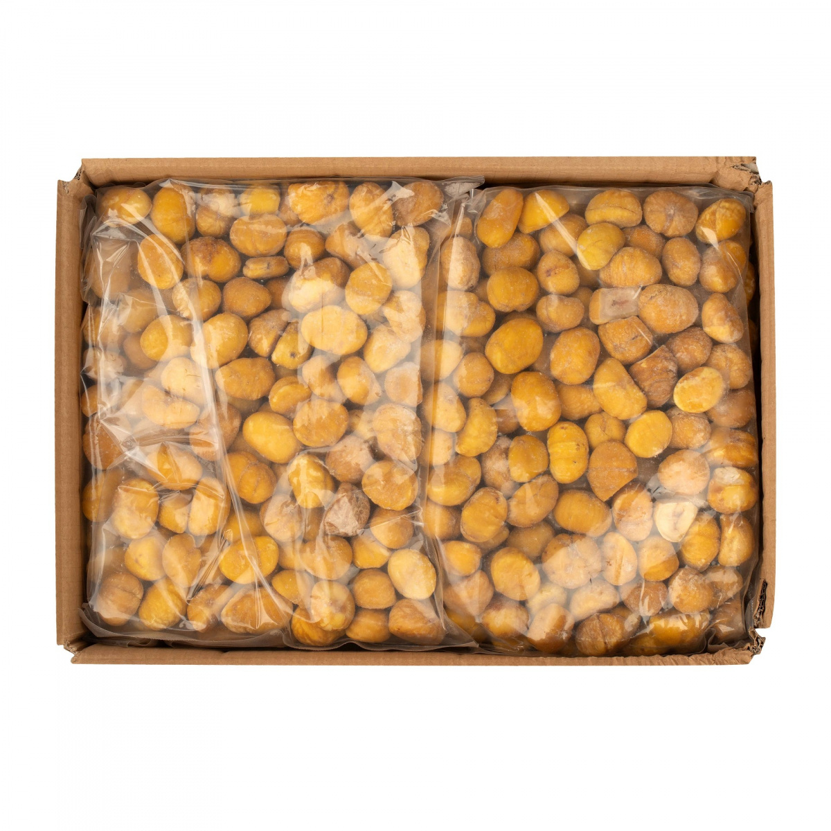 Отборные каштаны без скорлупы, полностью очищенные и замороженные в целостном виде. Отличаются сладковатым вкусом и нежной текстурой после приготовления. Подходят для запекания, варки, жарки, а также в качестве ингредиента в супах, салатах, десертах и гарнирах. Источник клетчатки, витаминов группы B и минеральных веществ. Продукт готов к тепловой обработке без предварительной подготовки.