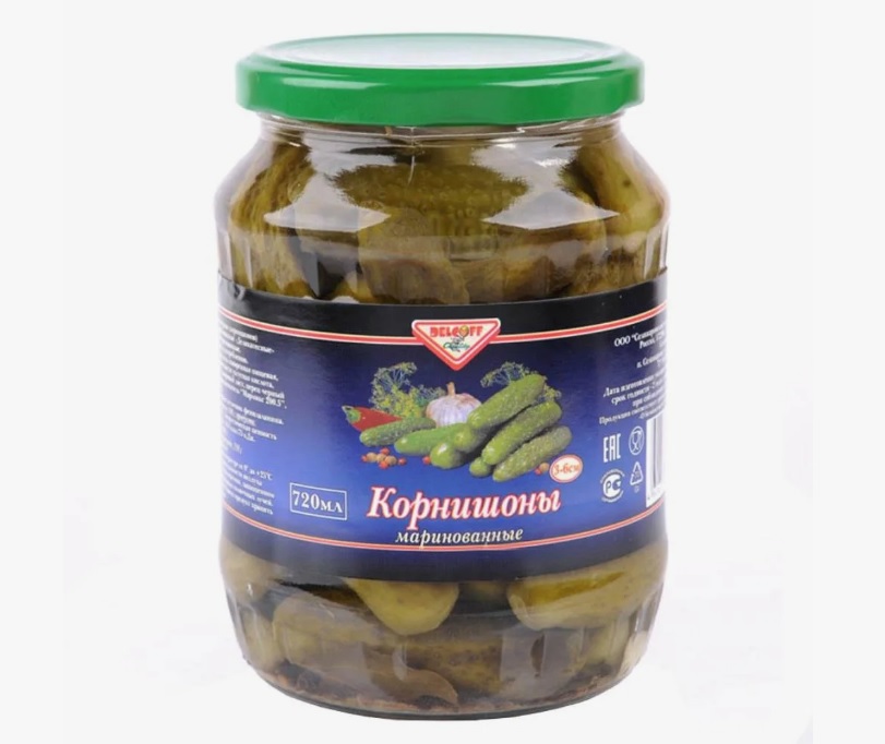 Огурцы "ДЕЛЬКОФФ" корнишоны 3-6 см (0,680кг)