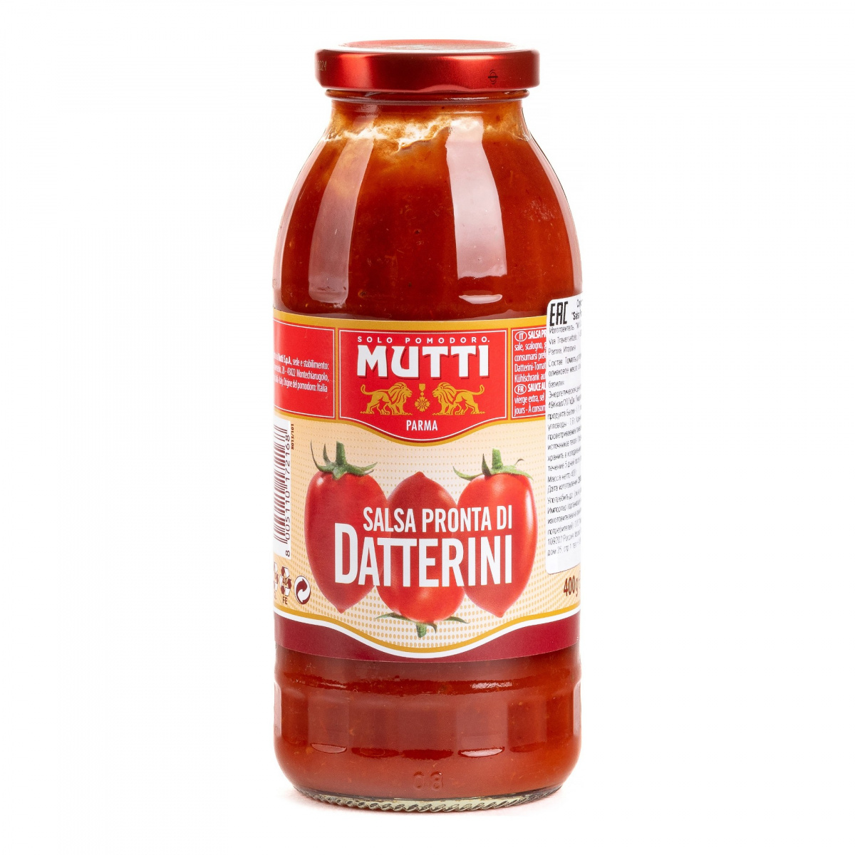 Соус “Salsa di Datterini” изысканный соус, приготовленный из томатов Даттерини, собранных на пике зрелости, по традиционному рецепту семьи "Mutti". Обладает натуральным цветом, нежным вкусом и легкой томатной сладостью, присущей сорту Даттерини. Соус “Salsa di Datterini” идеален для приготовления вкусных блюд по традиционным итальянским рецептам, таких как пицца, паста, лазанья и супы-пюре на основе томатов. Станет великолепным дополнением к свиным ребрышкам, курице, сочному мясу, овощам на гриле. О производителе: История компании "Mutti" началась в 1899 году, в регионе «Эмилия Романья», которая с давних времен славится своей изысканной кухней.Компания "Mutti" – производитель, прошедший путь от небольшой сельскохозяйственной фабрики до крупного производителя с мировым именем благодаря высшему качеству продукции и любви к своему делу.