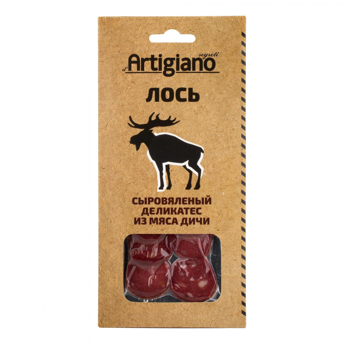 Колбаса сыровяленая из лося, Segreti d’Artigiano категория А, серв.нарезка (0,075кг)