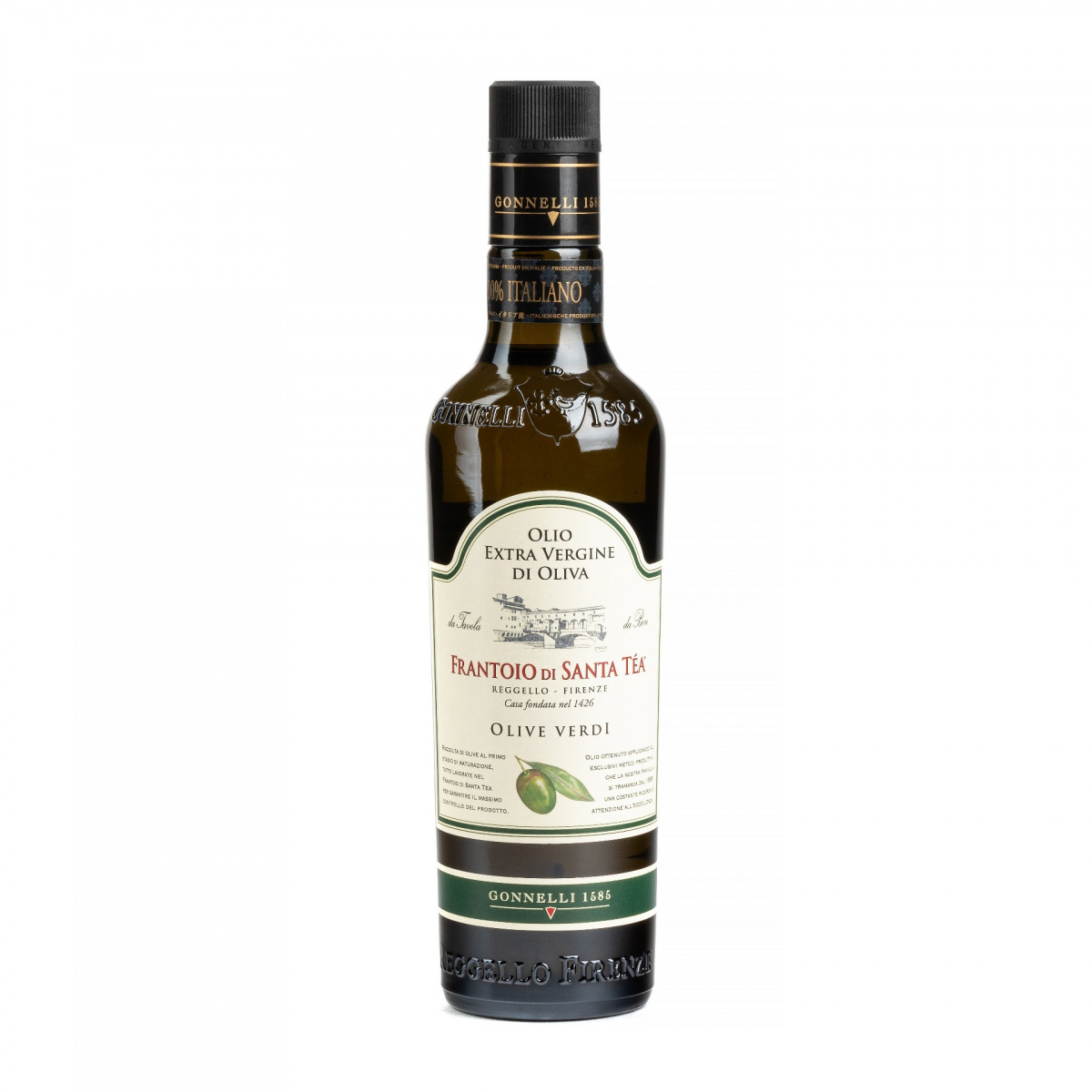 Frantoio di Santa Tea Olive Verde “Gonnelli” - обладает красивым зеленым цветом с оттенками золота, отличается деликатным ароматом артишока, свежей травы и зеленого лесного ореха, насыщенным вкусом с тонами специй. Идеально в сочетании с красным мясом, рыбой на гриле, сырыми овощами, вареным картофелем, а также в качестве заправки томатных салатов в сочетании с небольшим количеством бальзамического уксуса, добавления в супы и итальянские закуски.«Gonnelli 1585» - одно из самых знаменитых хозяйств по изготовлению оливкового масла региона Тоскана с 1585 года.История появления производства масло Frantoio di Santa Tea восходит к 1426 г., Оливковые деревья выращиваются в горном регионе на высоте 300 метров над уровнем моря.Продукция представлена в лучших ресторанах и бутиках мира.