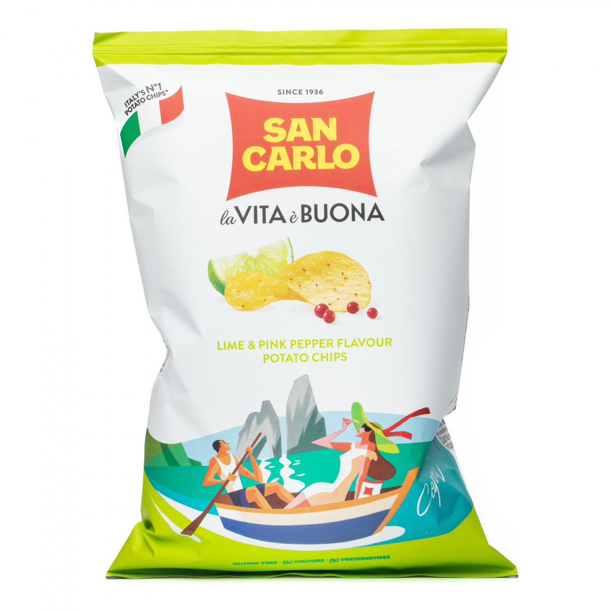 Чипсы картофельные со вкусом лайма и роз перца, San Carlo (0,050кг)