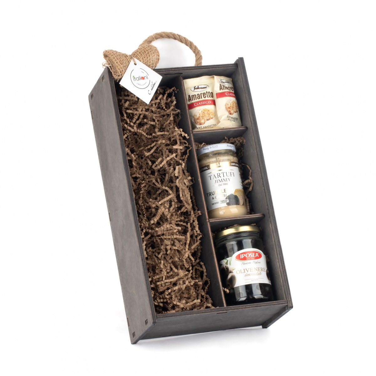 Премиальный набор для истинных ценителей итальянской кухни и утончённых вкусов. В нём собраны деликатесы, которые гармонично сочетаются между собой и подойдут как для уютного вечера, так и для изысканной сервировки стола. Упакован в стильный пенал с крафтовым наполнителем — готов к дарению и впечатлениям.