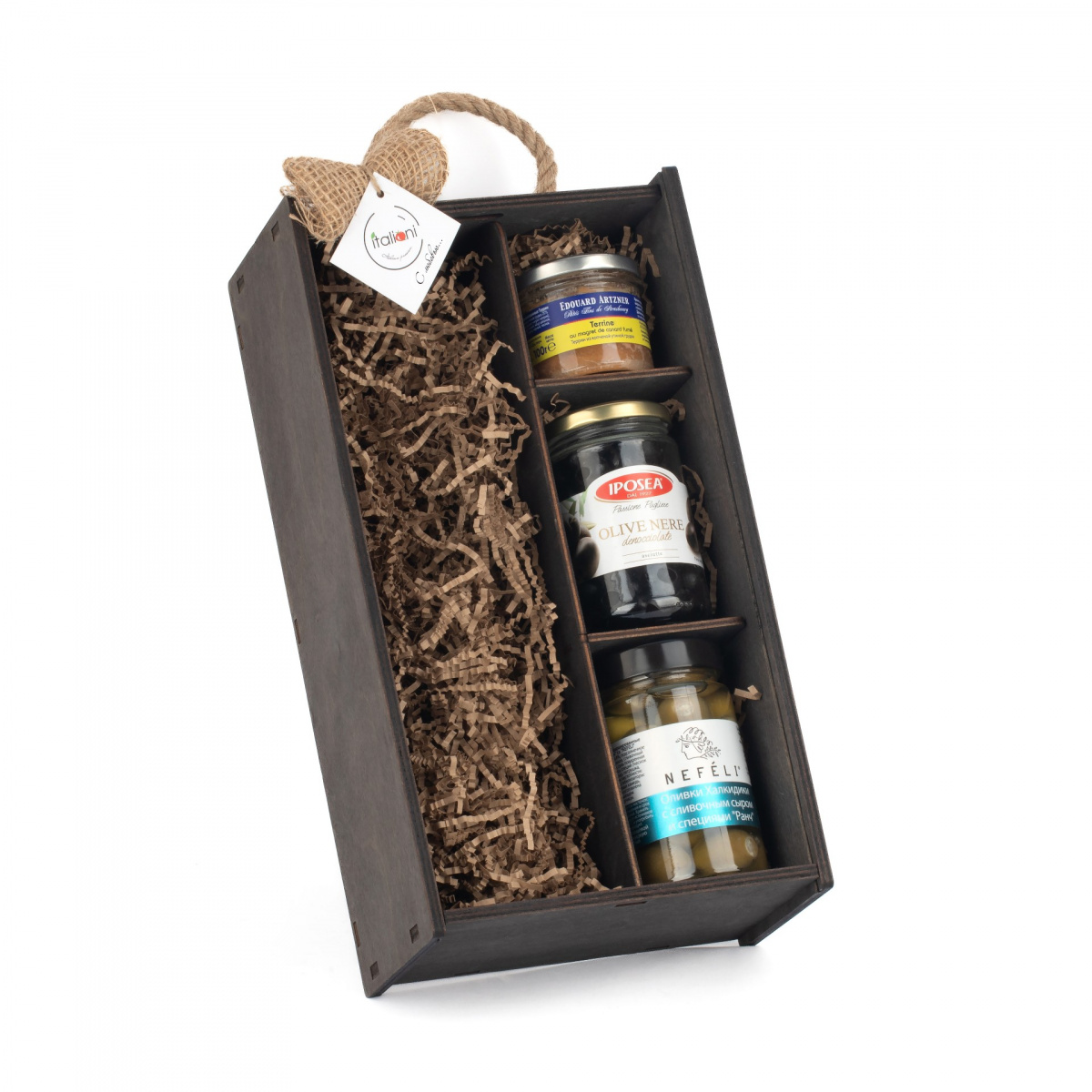 Идеальное сочетание деликатесов для стильного аперитива, сырной тарелки или неспешного гастрономического вечера. Продукты с выразительным вкусом и текстурой, вдохновлённые средиземноморскими и французскими традициями. Упакован в элегантный подарочный пенал с крафтовым наполнителем — всё готово к красивому вручению.