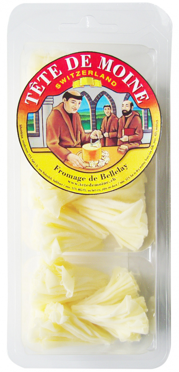 Когда-то популярное средство оплаты, а сегодня деликатес на столах французских благородных домов и швейцарского высшего церковного духовенства, сыр Tête de Moine AOP остается эксклюзивным удовольствием. Его чистый, цветочно-ароматный и сливочно-пряный вкус со сбалансированной соленой нотой прекрасно раскрывается, когда его специальным ножом Жироль сворачивают в розочки. Tête de Moine AOP цилиндрической формы весом около 800 грамм производился еще в 18 веке в жюрасском монастыре Белель. Сегодня Tête de Moine AOP производится в местных сыроварнях из лучшего натурального молока от коров, которые пасутся в горах и питаются исключительно травой и сеном. Легендарный сыр Tête de Moine AOP, драгоценная жемчужина региона, когда-то доступная лишь местным жителям, теперь является украшением любого праздничного стола составе сырной тарелки.